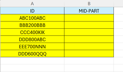 Here we have some IDs – we want the middle part – the numeric 3 characters.