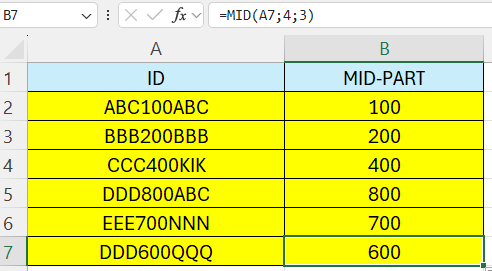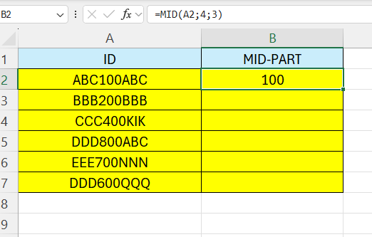 The MID-function is used for string-manipulation. It is used to extract a part of a string.