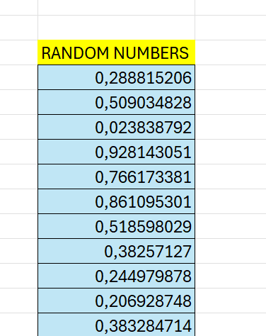 Keep in mind that =RAND() recalculates every time a workbook is opened or changed, and it can be heavy if it is a big load of data.