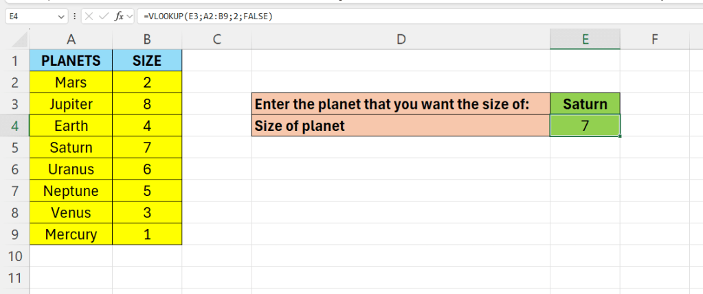 =VLOOKUP(E3;A2:B9;2;FALSE)