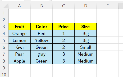 Below we have 4 columns of data – sometimes it is nice to have a label that stretches across more columns.