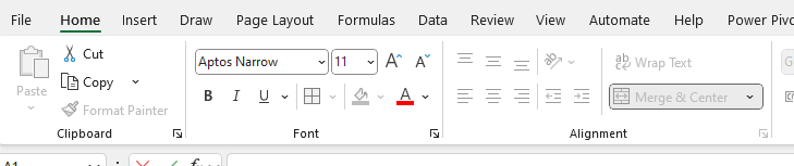 Select A1:D1, go to the Home tab and click on “Merge & Center”