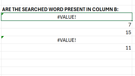 To check if a value or a substring is present in a range we can use the SEARCH function. We will then combine this with the ISNUMBER function.