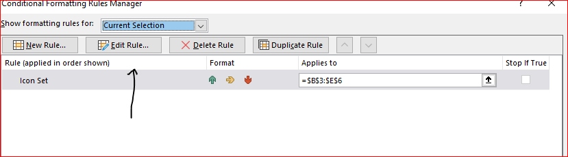 - Go to “Conditional formatting” – select “Icon Sets” and select the first image – see below picture.
