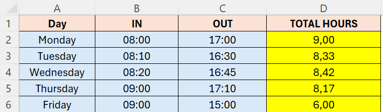 In the previous part we did some examples on calculating working hours. In this part we are going to do the same, but using another approach.